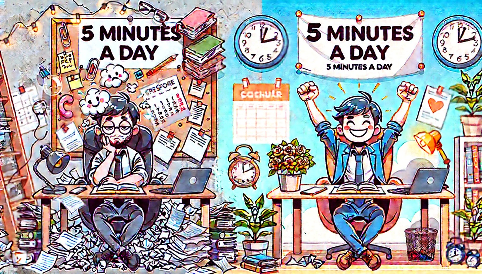 사실 시작이 어려운 것이 더 큰 문제입니다. 그래서 가장 좋은 접근은 작게 시작하는 것이고, 그중에서도 가장 부담 없이 실천할 수 있는 시간 단위가 바로 ‘5분’입니다.